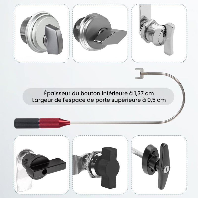 • Efficace: Outil de contournement commercial hautement coté très efficace sur les portes en aluminium avec serrure à bouton.