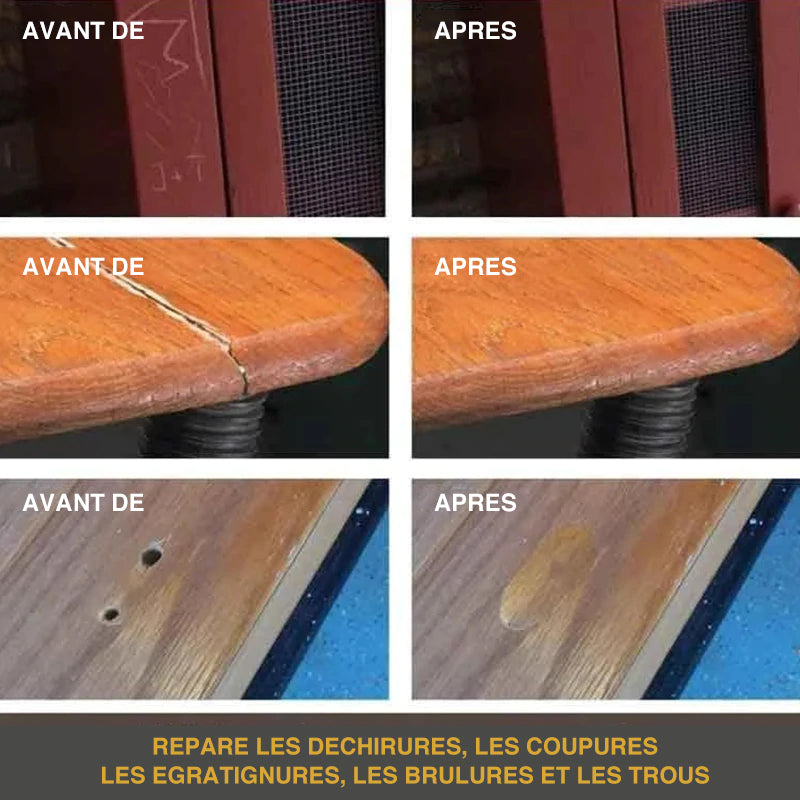 Recommandé pour réparer les petites rayures sur les sols stratifiés, les comptoirs, les meubles, les armoires, le bois, les cadres de fenêtres, etc.
