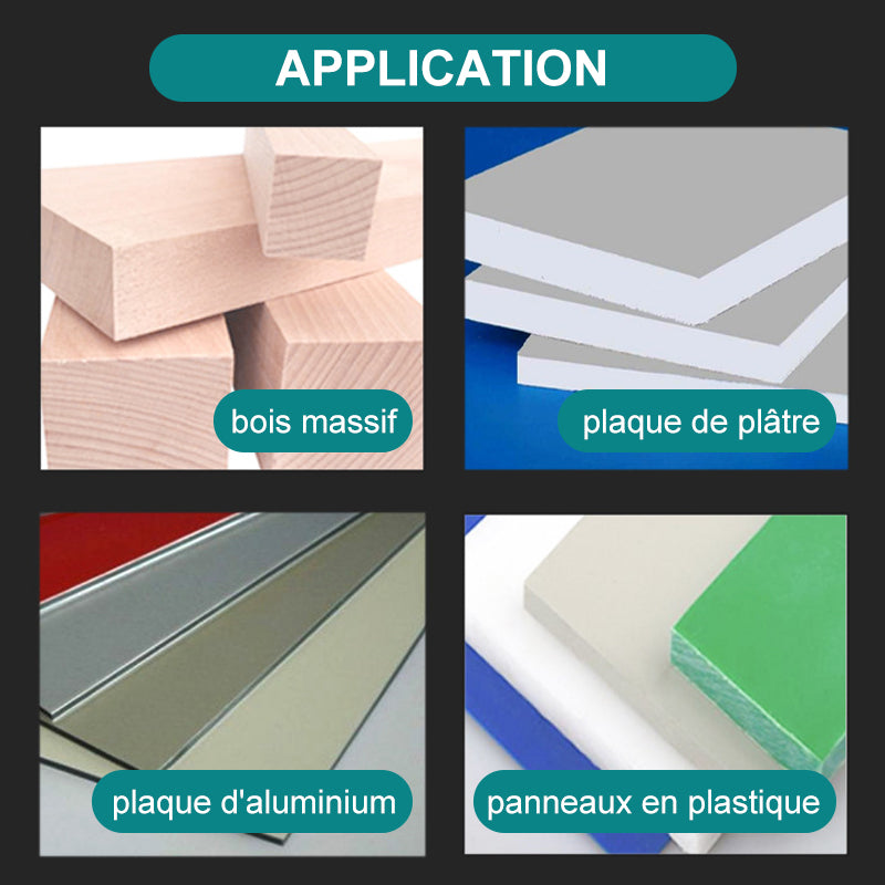 Matériaux applicables : bois massif, plaques de plâtre, panneaux composites en aluminium, feuilles de plastique