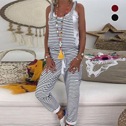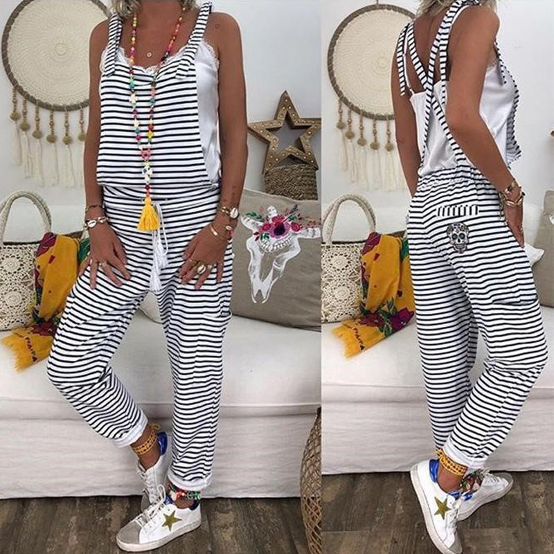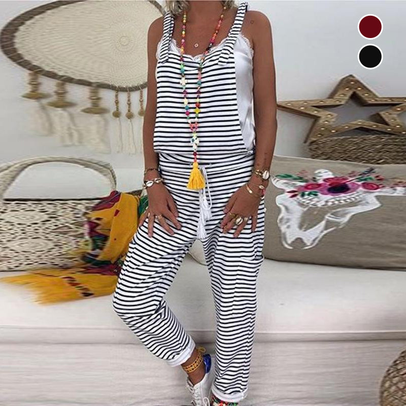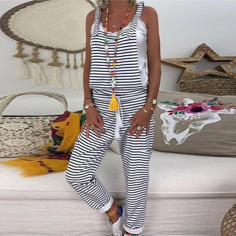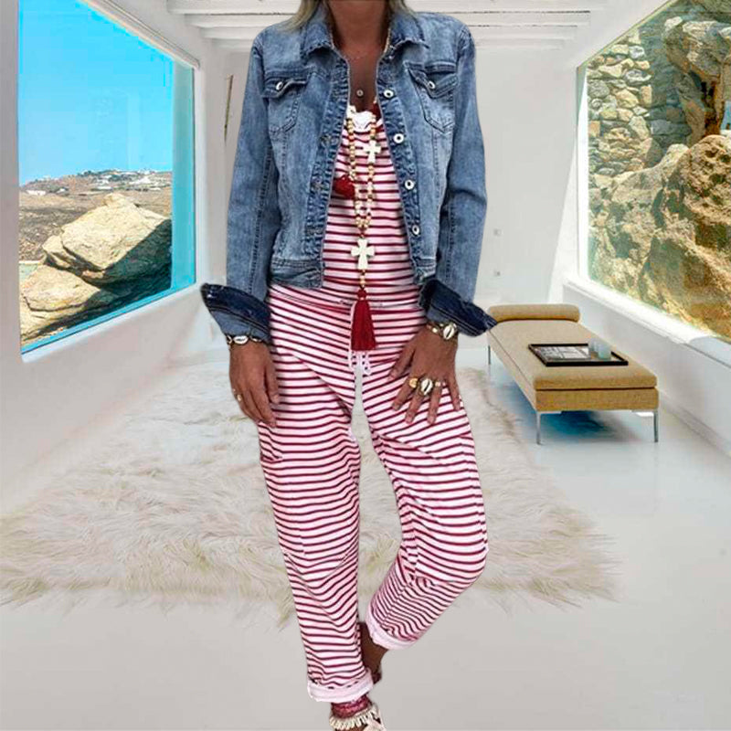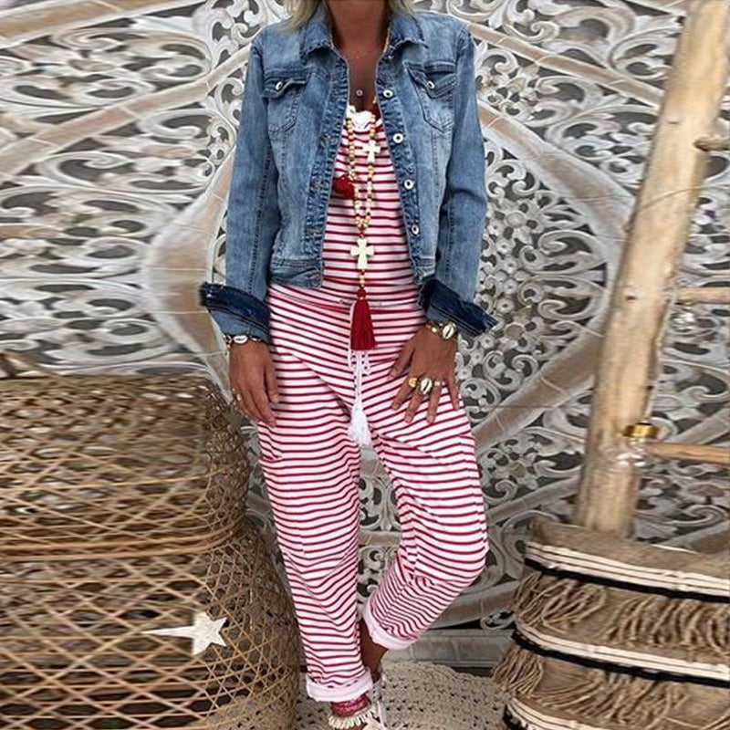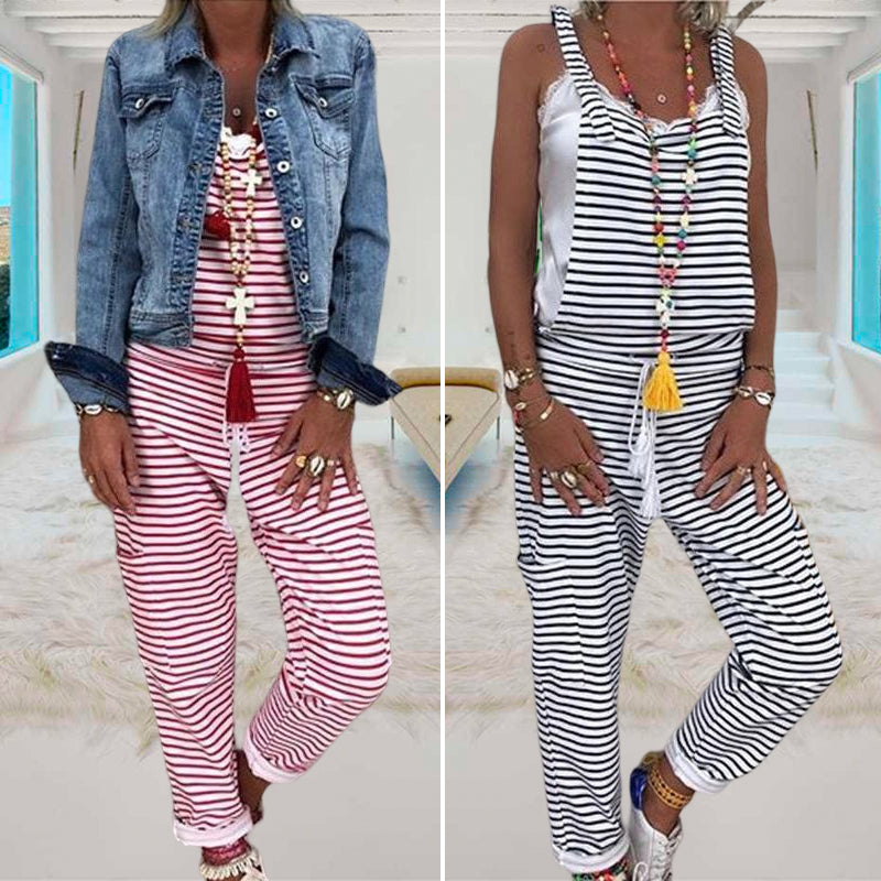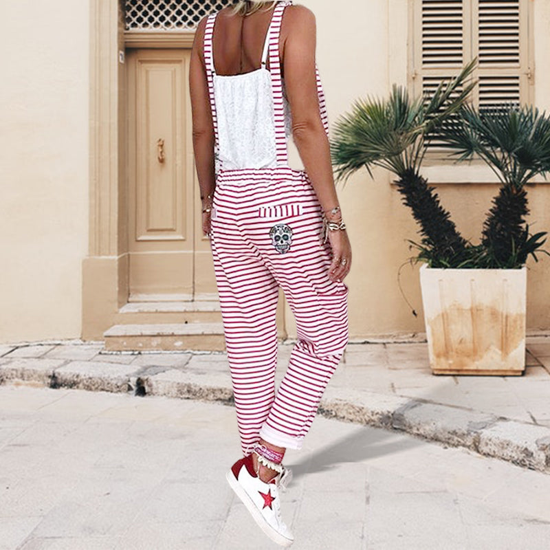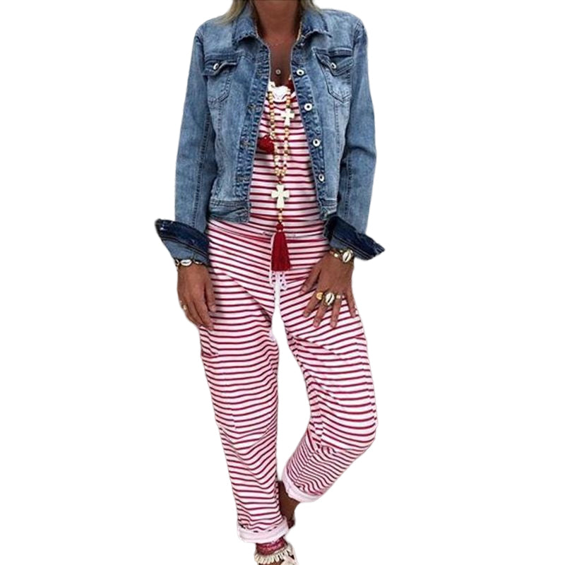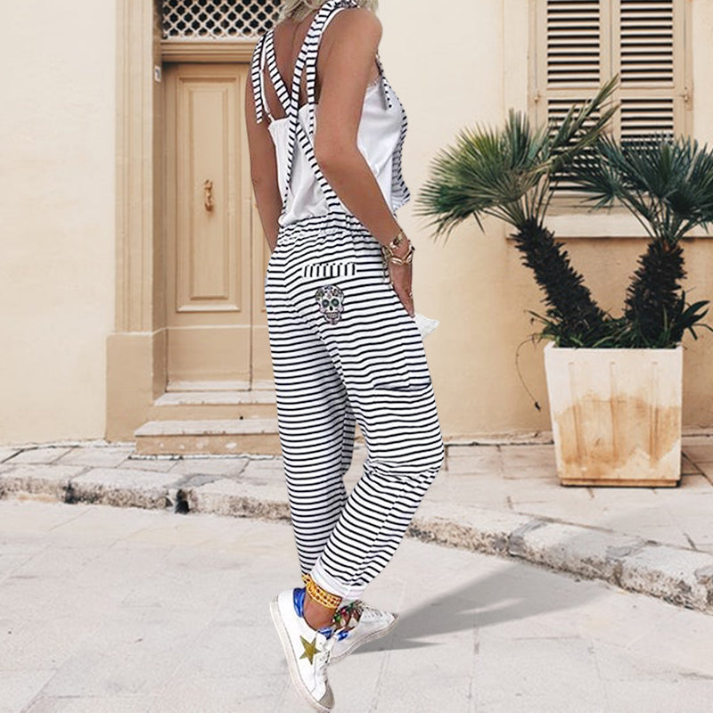 • Emballer : 1 * Pantalon à bavette rayé pour femmes à la mode décontractée