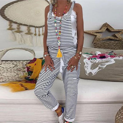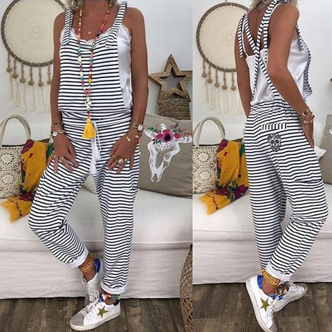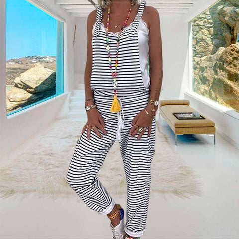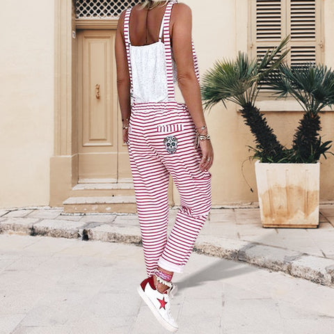 Pantalon à bavette rayé pour femmes à la mode décontractée