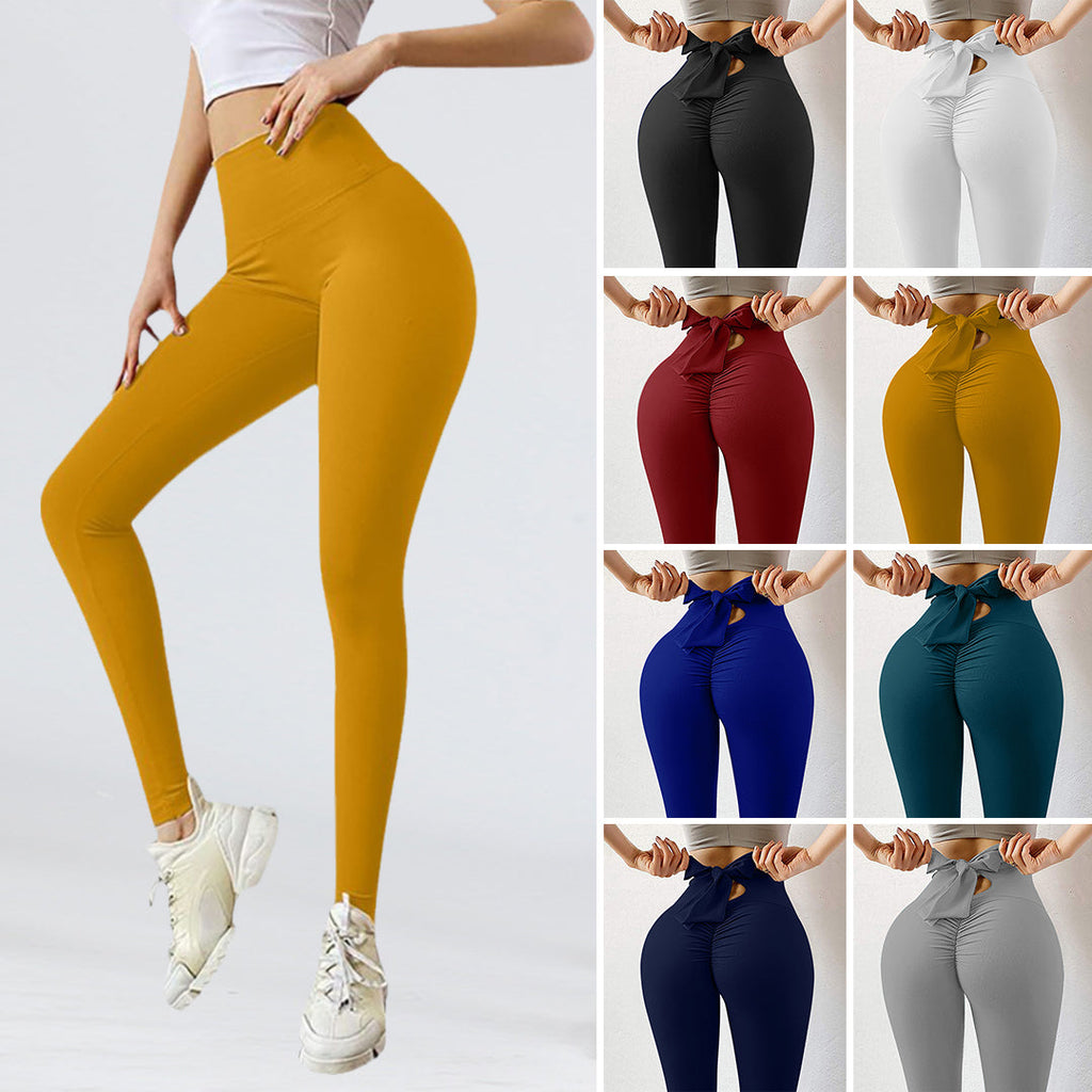 • 1 paire * Pantalon d'entraînement de yoga sexy avec nœud papillon et fesse de pêche
