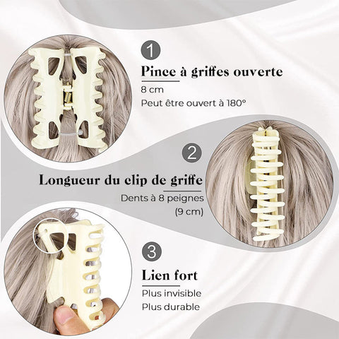 - 1* La pince à queue de cheval désordonnée étend les cheveux