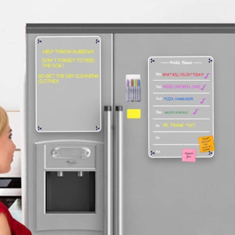 Le calendrier magnétique acrylique pour réfrigérateur est un produit conçu pour vous permettre de planifier votre vie quotidienne, le panneau de calendrier magnétique acrylique clair élégant et l'ensemble de mémo vous permettent d'écrire plus. Gagnez de l'espace et organisez votre vie quotidienne et celle de votre famille avec des tableaux de planification chics.