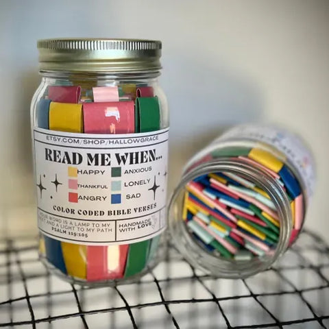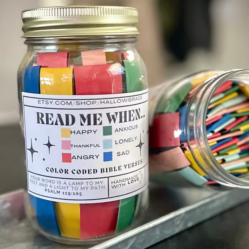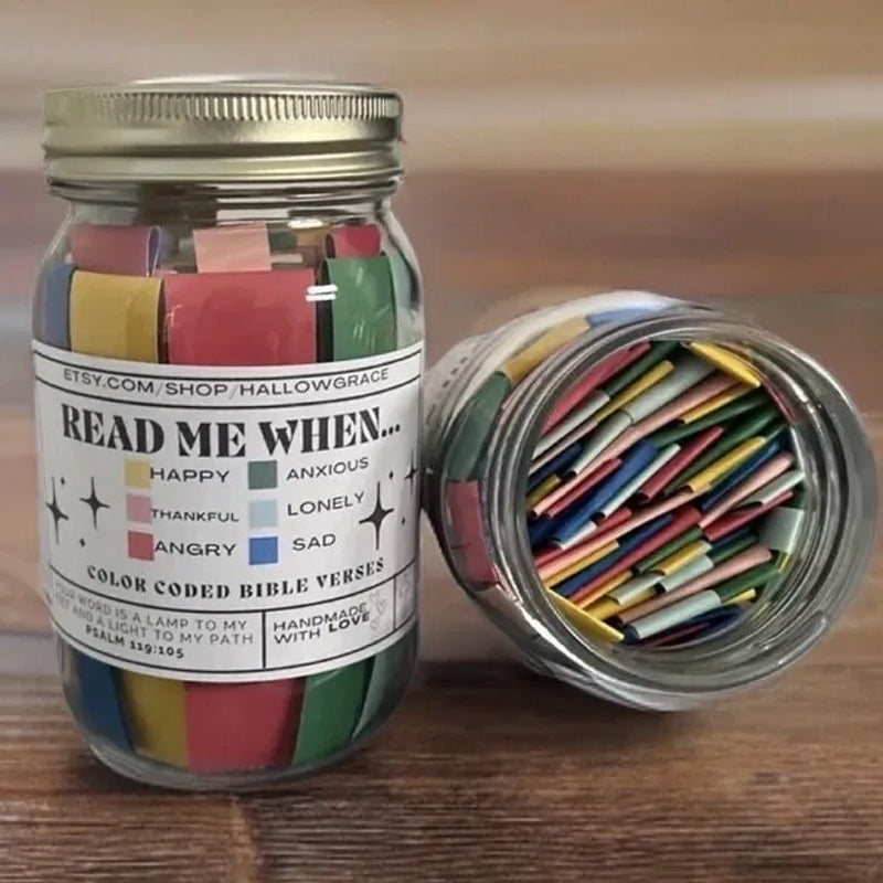 • Les bocaux d'Écritures à code couleur sont un moyen unique de vous guider dans la Parole de Dieu et de vous amener à une relation plus profonde avec Lui.