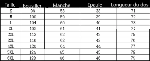 REMARQUE: NOUS VOUS SUGGÉRONS DE CHOISIR UNE TAILLE PLUS GRANDE ! IL POURRAIT ÊTRE PLUS SÛR DE CHOISIR LA TAILLE AU-DESSUS, PLUTÔT QUE LA TAILLE EN BAS !