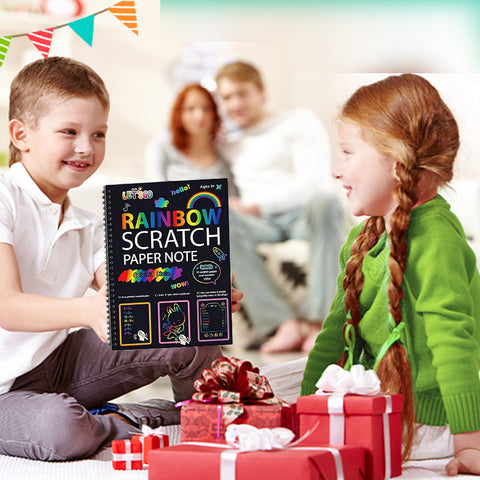 • ❤️Un matériau fiable❤️Notre papier à dessin arc-en-ciel est fabriqué à partir de papier de haute qualité. Cadeau à gratter pour enfants, peint en noir sur le dessus et sur fond d'arc-en-ciel en dessous. Non toxique et inodore. Fabriqué en bambou, le stylet est léger, écologique et facile à utiliser. Ce sont les meilleurs jeux à gratter pour les enfants ! ! !