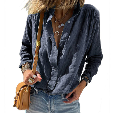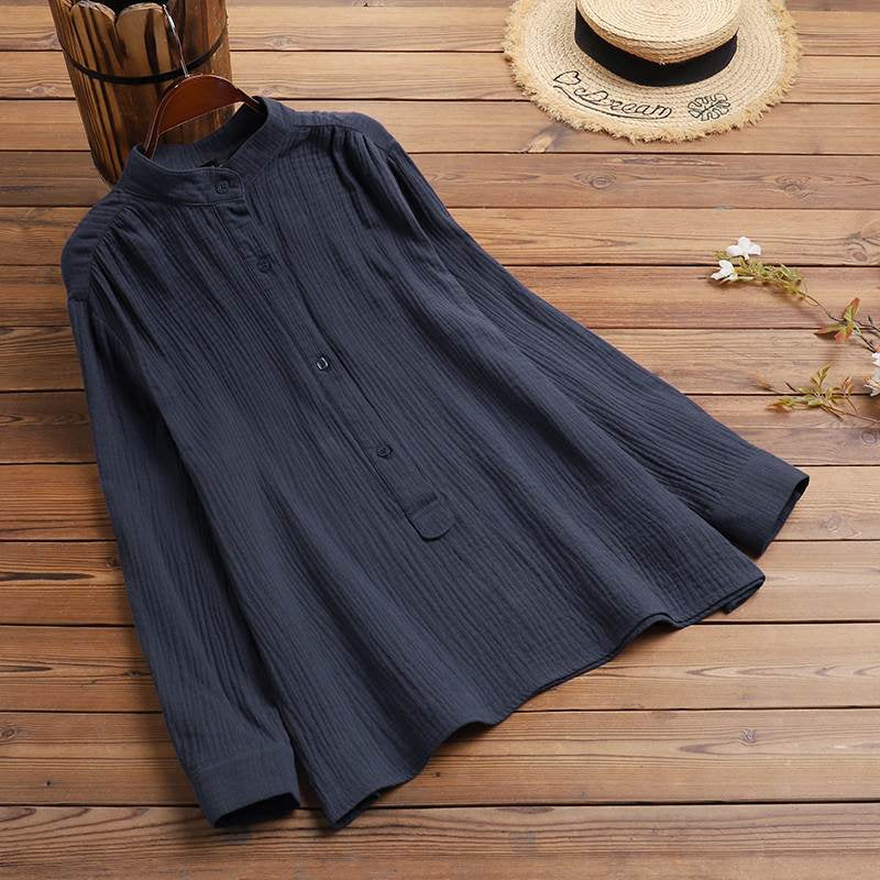 - 1 * Chemise à Manches Longues en Coton et Lin à Boutons Amples
