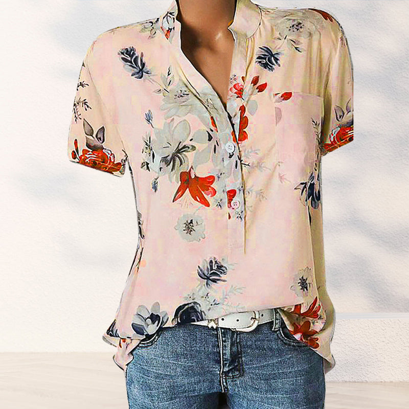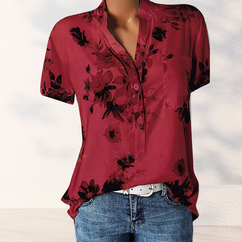 - 1 * Chemise manches courtes imprimée col V