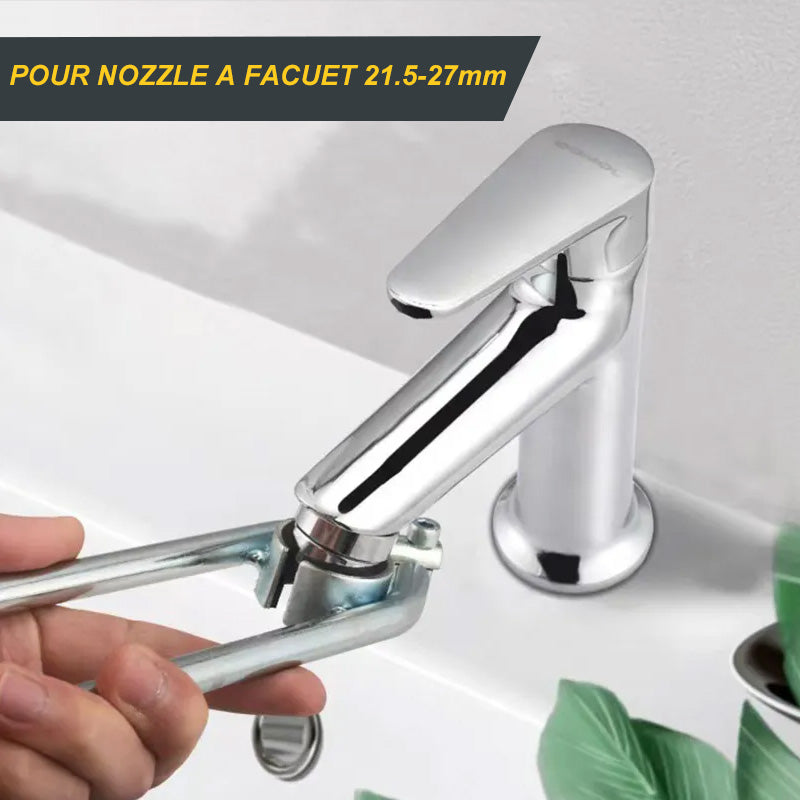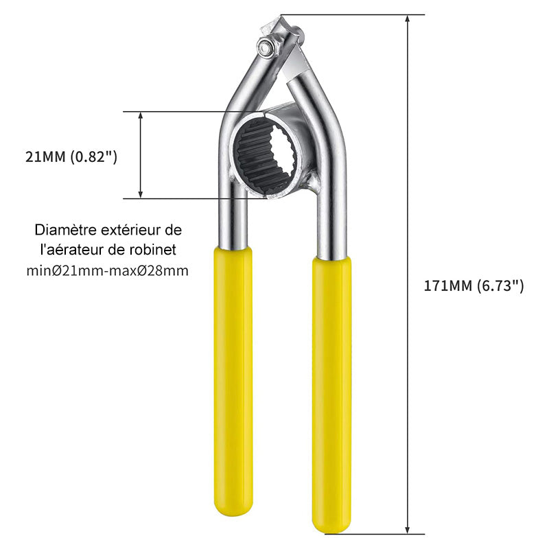 Large champ d'application : La largeur d'ouverture réglable convient aux tuyaux ou aux conduites d'un diamètre extérieur de 21,5 mm ~ 27 mm (7/8 pouce ~ 1 pouce), ce qui convient à la plupart des marques d'aérateurs de robinets.