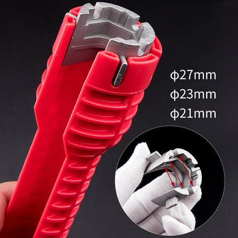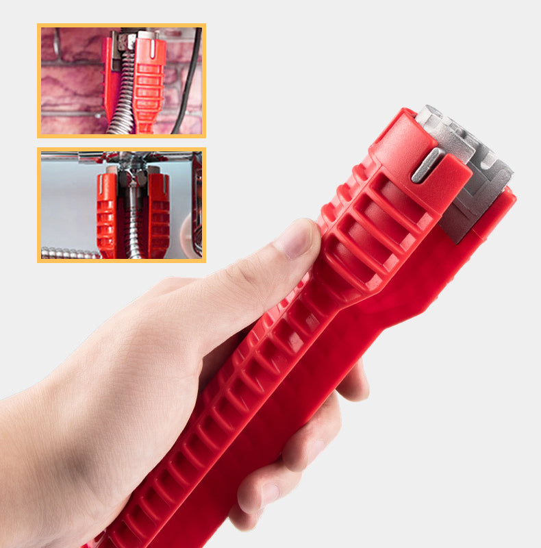 Facilitez les réparations de plomberie et évitez de serrer et de contorsionner votre corps dans des espaces restreints avec la clé à évier 8 en 1!