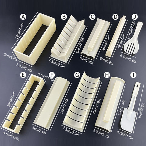 • 💝Facile Ă  dĂ©marrer: livrĂ© avec des instructions colorĂ©es Ă©tape par Ă©tape, ajoutez d'abord le nori sur la base du moule, et remplissez-le avec du riz et vos ingrĂ©dients prĂ©fĂ©rĂ©s dans les moules (vous n'avez pas besoin de les rouler), puis appuyez sur la forme du moule, et vous pouvez obtenir vos merveilleux sushis japonais faits maison directement Ă  la maison.