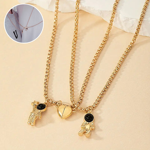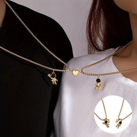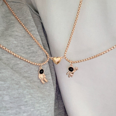 - 1 * Collier Couple Spaceman Pendentif aimanté
