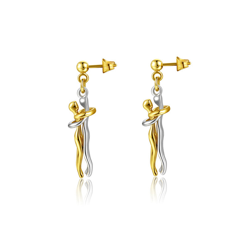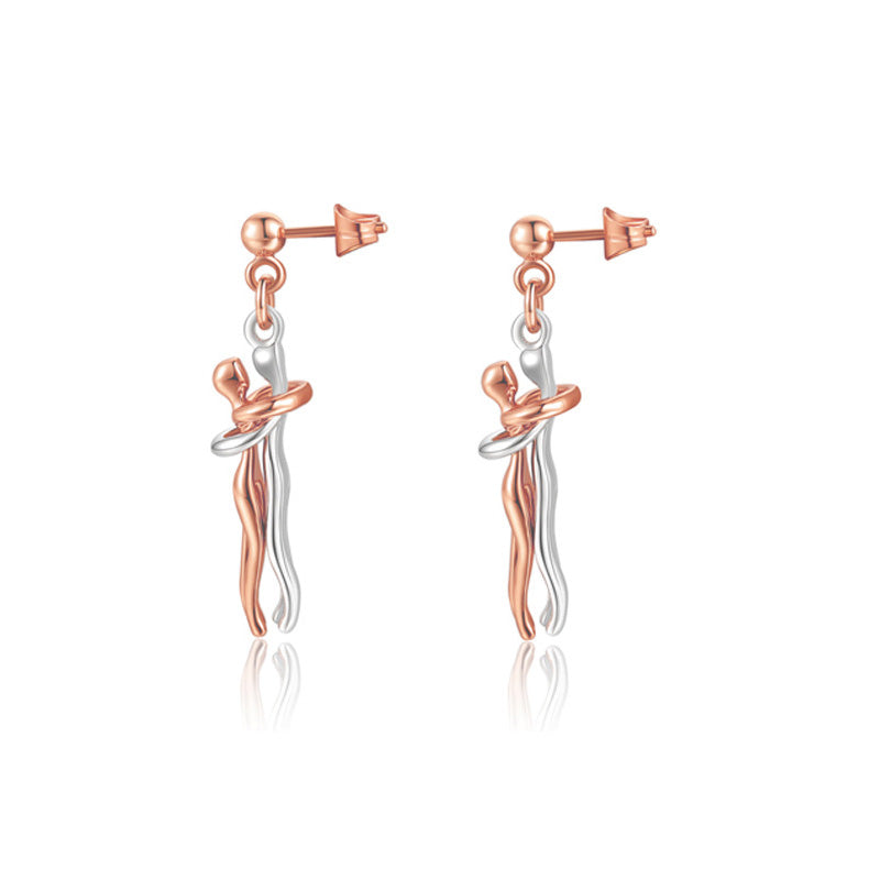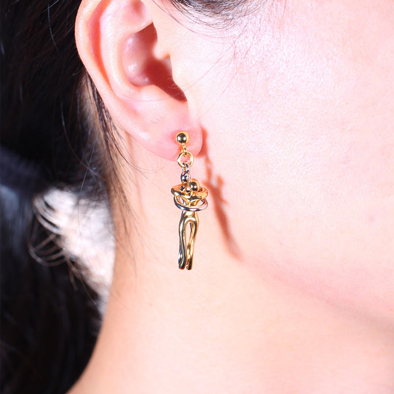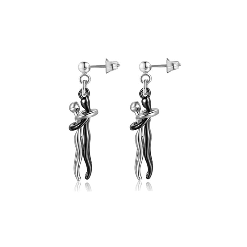 Collier et boucles d'oreilles Couple Hug: Le collier et les boucles d'oreilles Affectueux Hug signifient que deux cœurs s'attirent et se manquent. Le design des deux personnages qui se serrent l'un contre l'autre symbolise la passion et le bel amour. Le design est nouveau et unique, ce qui vous fait dégager un charme élégant.