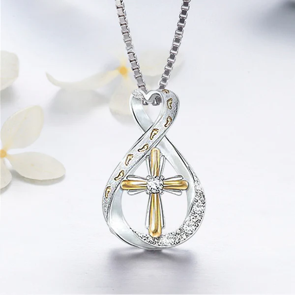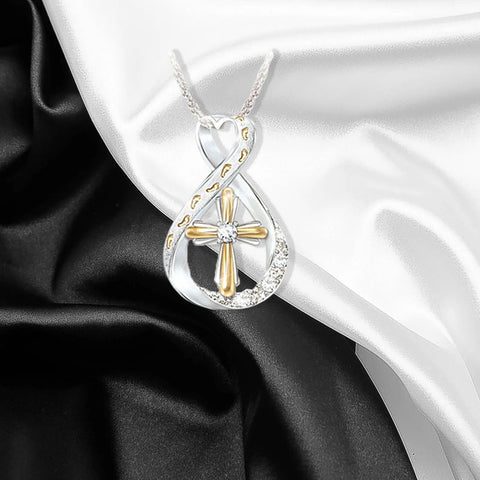 Haute qualité - Collier pour femme en alliage. Le symbole du pendentif infini est orné de zircons cubiques blancs scintillants pour le rendre vraiment accrocheur. La technique de polissage exquise est utilisée ici.