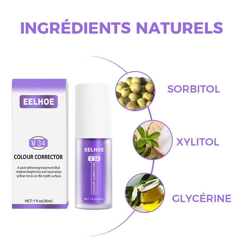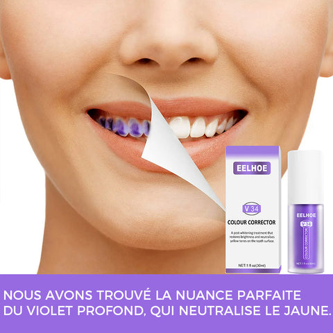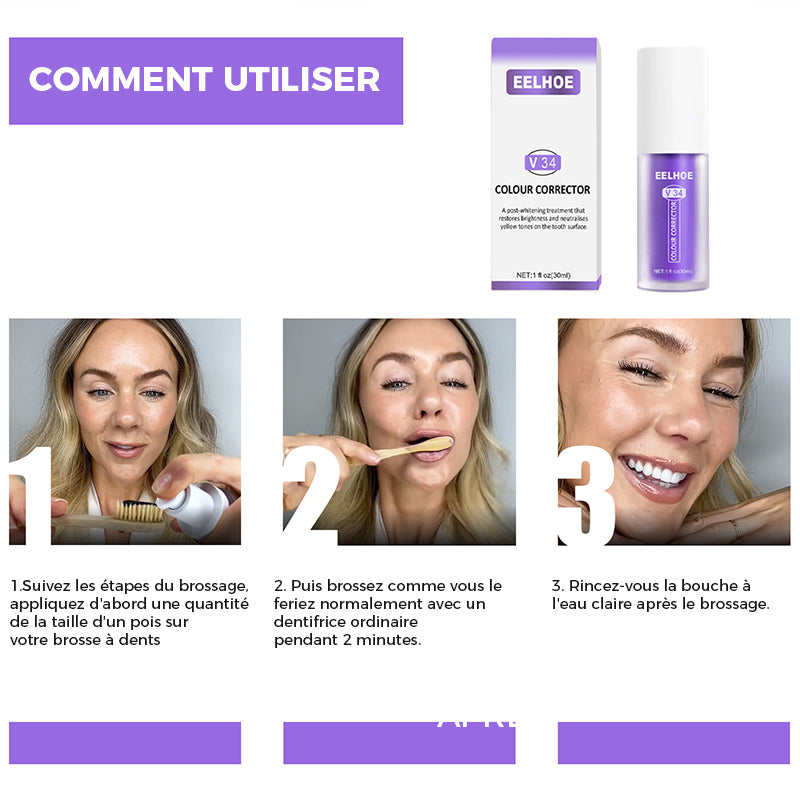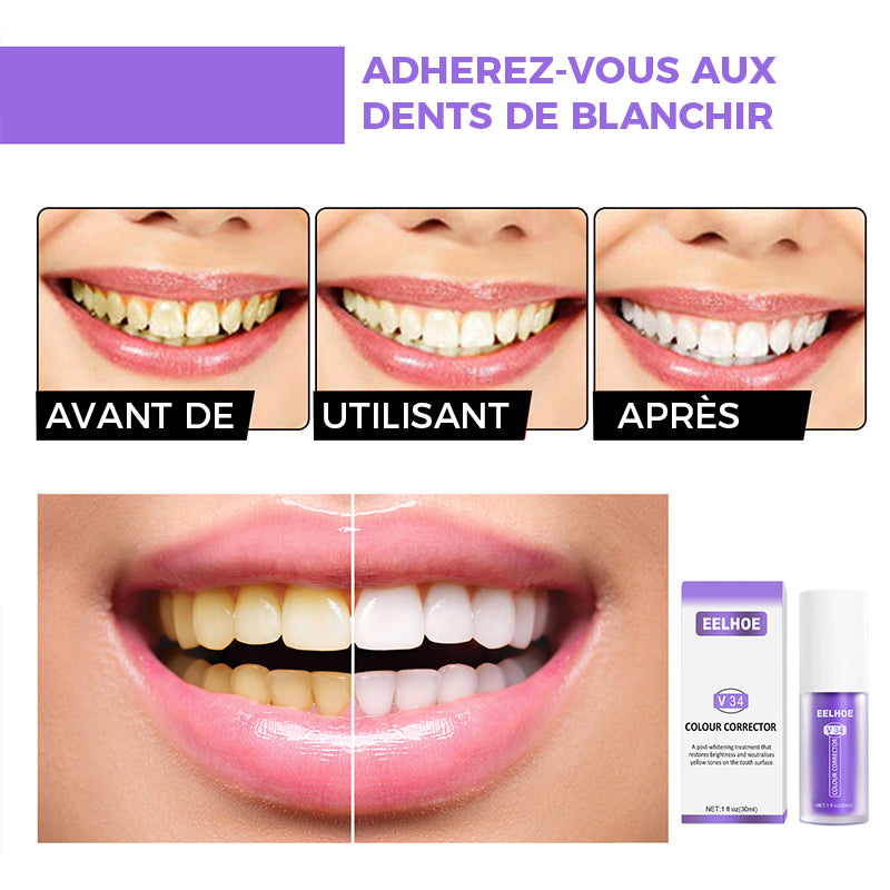 Anti-Cavités: Après des recherches, nous avons trouvé la couleur la plus parfaite du violet violet foncé, qui neutralise les couleurs jaunes.