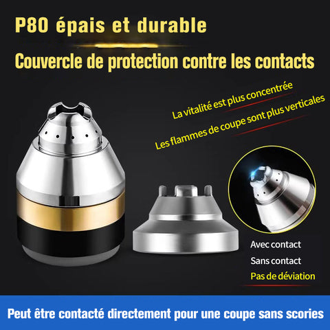 NOUVEAU UPGRE : La rainure de guidage de l'air et le trou de dissipation de la chaleur empêchent les éclaboussures et le refoulement, peuvent être laminés sur une plaque d'acier pour la coupe, pas besoin de roue de guidage et de buse en porcelaine, la buse de coupe est plus durable et plus pratique à utiliser.