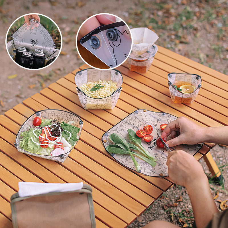 Réutilisable et facile à nettoyer: Ce bol pliable pour le camping est doté d'une surface résistante à l'huile, facile à nettoyer, réutilisable et pratique à ranger.
