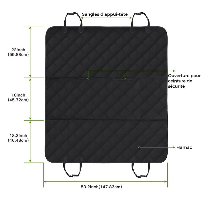 • Design parfait --137cm de largeur x 147cm de longueur, la housse de siège est très douce, et idéale pour tous les arrières de voitures standard, camions & SUV. Facilement convertible entre un hamac et une housse de banquette standard.