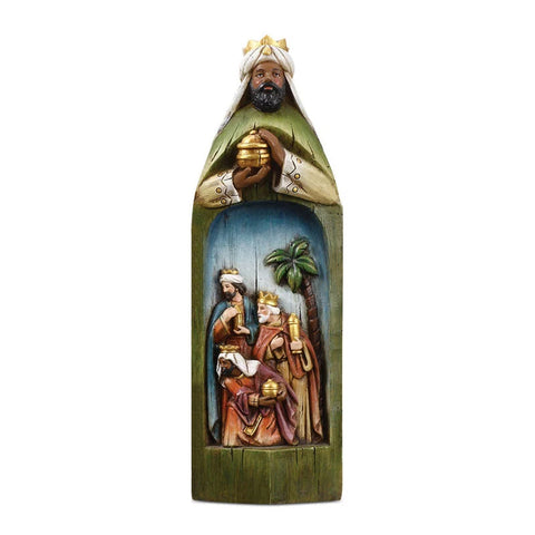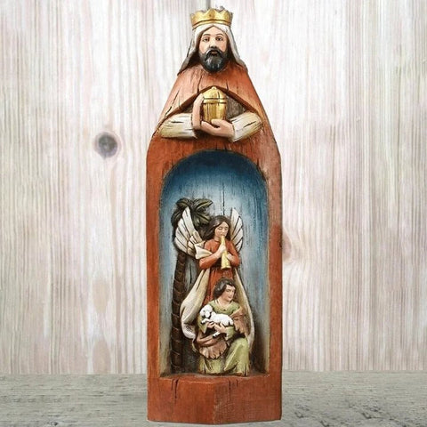 Cette belle pièce peut montrer les scènes religieuses sculptées à l'intérieur!