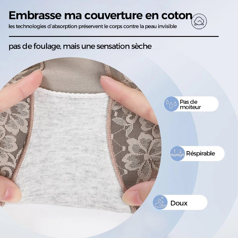 MULBERRY SILK CROTCH - Un mélange de soie de mûrier et de coton qui évacue l'humidité et laisse respirer la peau garde votre entrejambe au sec et aéré. Dans ce sous-vêtement féminin à la taille haute, vous restez fraîche et confortable toute la journée.