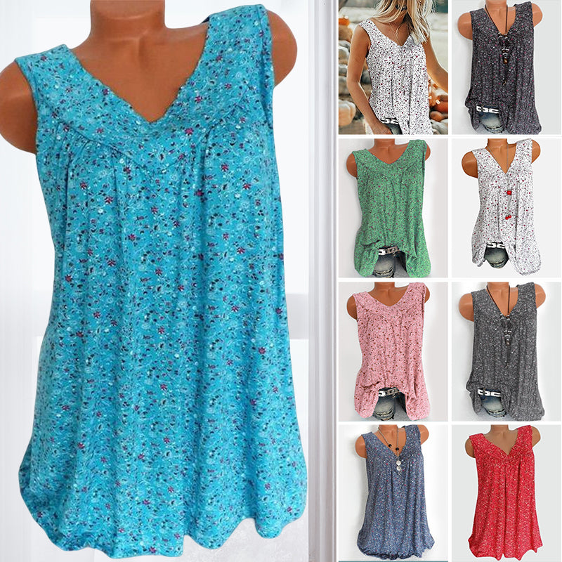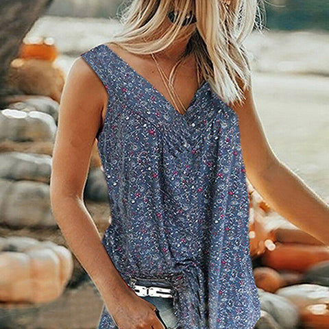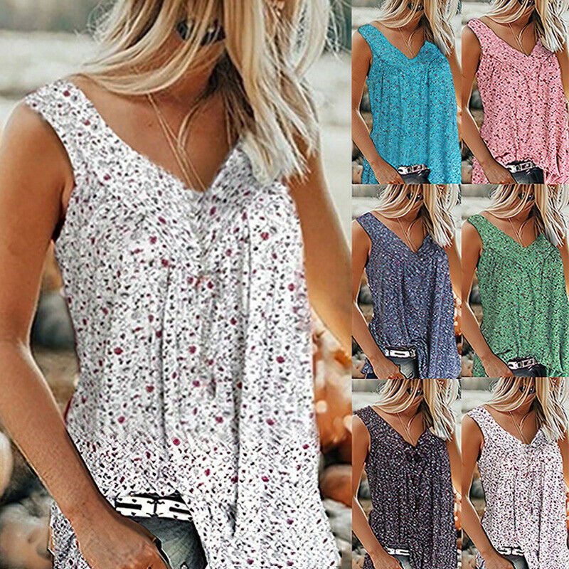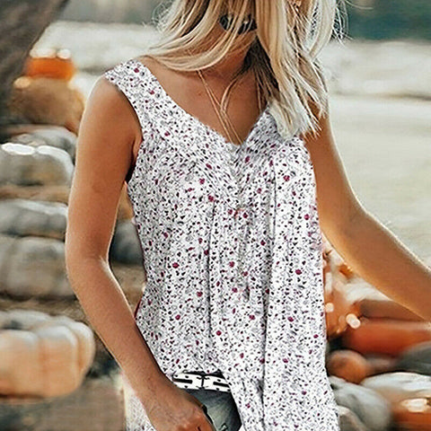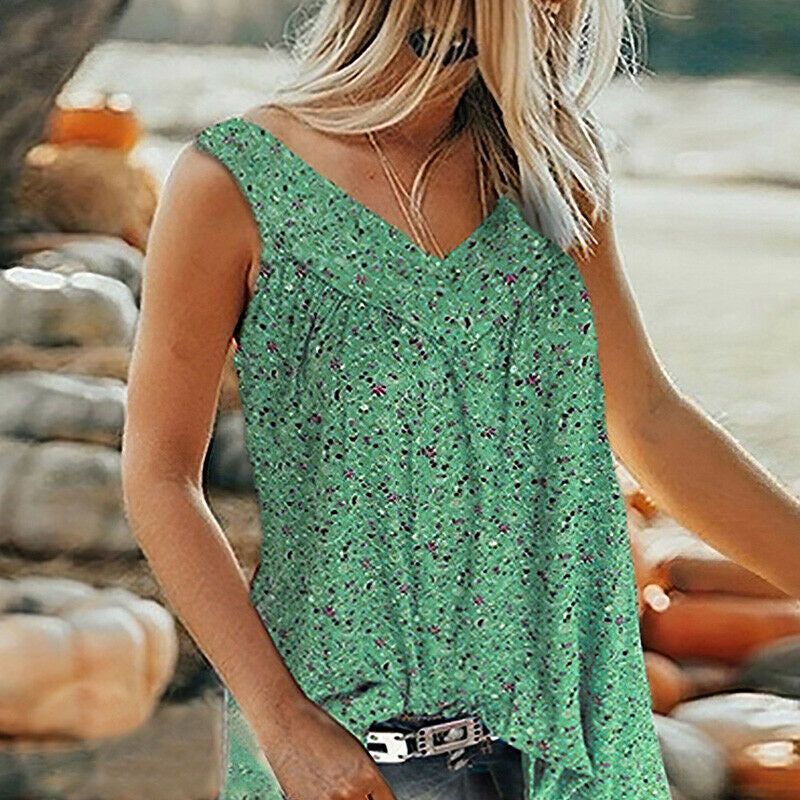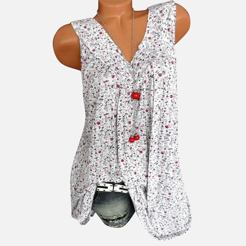 Paquet: Débardeur d'été sans manches avec col en V et imprimé floral * 1