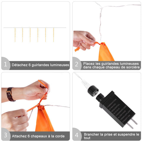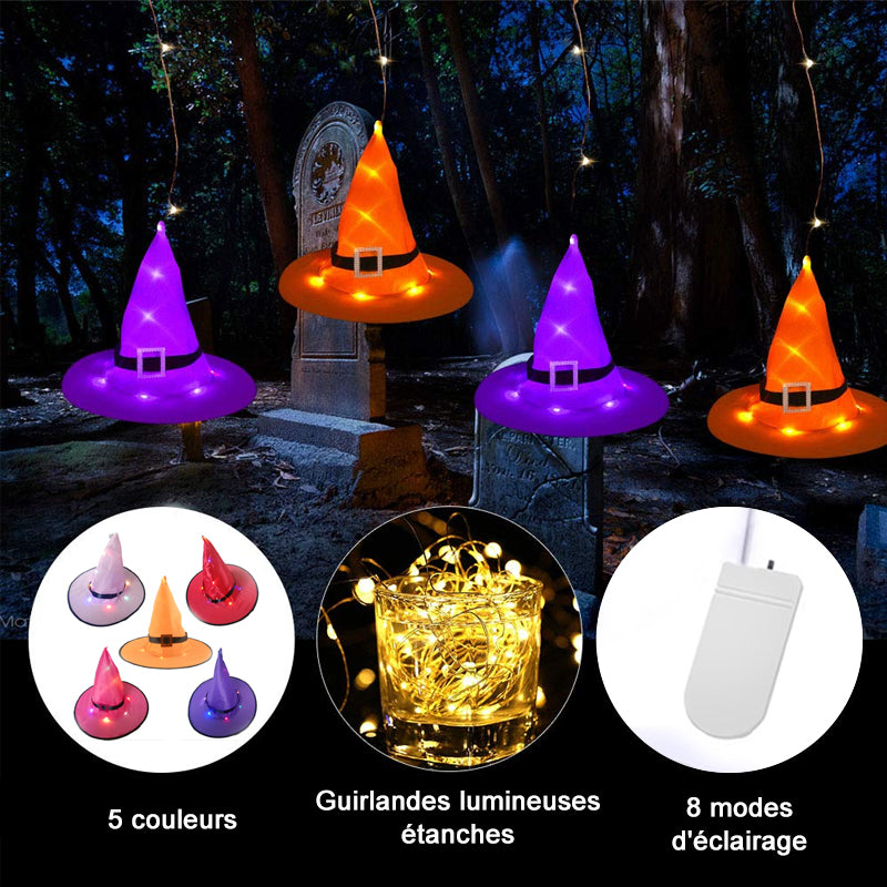 Les guirlandes lumineuses en forme de chapeau de sorcière vous permettront de vivre un merveilleux Halloween.