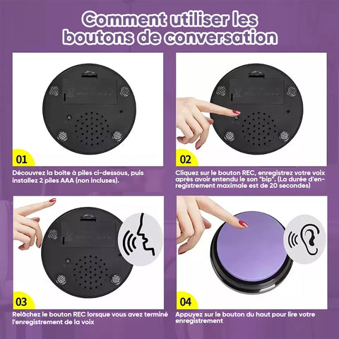 【Cadeaux amusants】 Le bouton enregistrable est idéal pour divertir les interactions, les farces, les gadgets de bureau, laisser un message, envoyer à vos amis éloignés, etc. Le cadeau d'anniversaire/vacances le plus créatif, vous laissant des souvenirs mémorables !