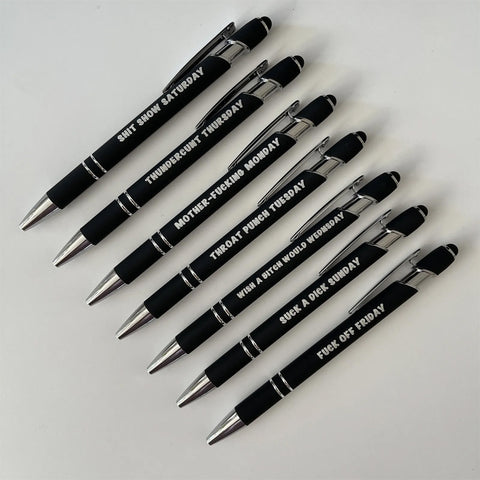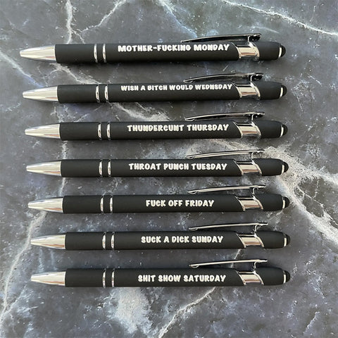 🤣Riez toute la semaine avec 7 stylos gravés uniques.