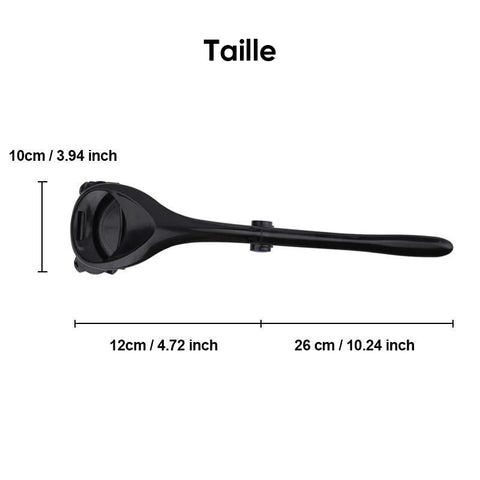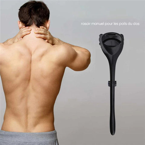 • Le Back Shaver comprend 2 rasoirs sur un manche extra long qui vous permet de vous raser le dos, que votre dos soit humide, sec ou plein de crème à raser.