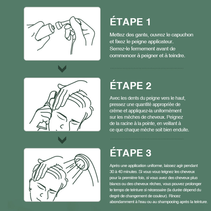 Rompre avec la tradition: Nous avons révolutionné la façon dont vous colorez vos cheveux. Plus besoin de mélanger ou d'estomper; il suffit d'ouvrir le couvercle et de commencer à appliquer. Il suffit désormais de peigner vos cheveux pour obtenir des résultats étonnants.