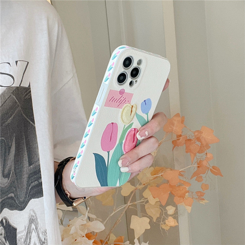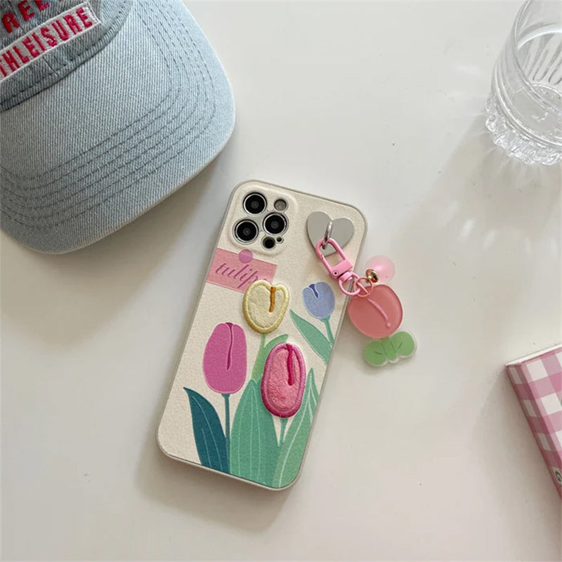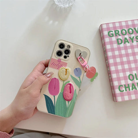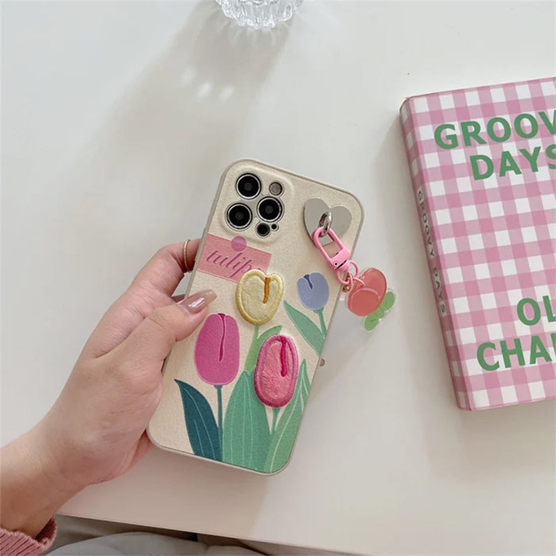 Étui à Fleurs Mignon avec Lanière de Téléphone