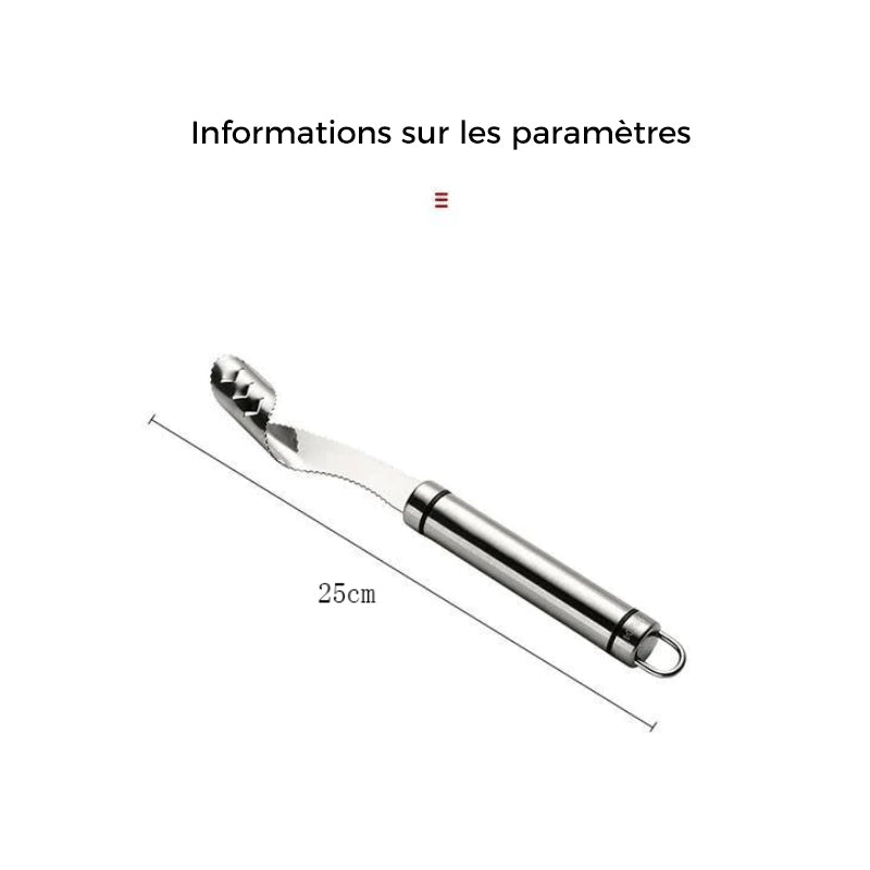 • Rapide: il suffit d'insérer et de tourner, puis la lame en acier inoxydable avec le bord dentelé et les dents intérieures tranchantes enlève facilement le noyau et les graines.