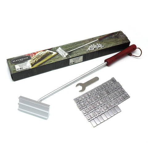 Le fer à marquer est fabriqué en alliage d'aluminium avec une finition en acier inoxydable brillant. La poignée mesure 16,5 po de longueur et la plaque mesure 3,4 po x 1,5 po x 0,5 po, avec un poids approximatif de 0,5 livre