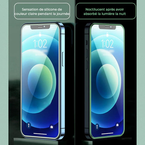 • PROTECTEUR D'ÉCRAN 2 EN 1 - Protégez votre iPhone comme jamais auparavant! Conçu avec des bords en silicone rebondi 2,5D fabriqués à partir de matériaux phosphorescents qui non seulement protègent l'écran de votre téléphone avec un verre 9H puissant, vous serez en mesure de trouver votre appareil plus facilement dans l'obscurité ! (Voyez-le par vous-même !)