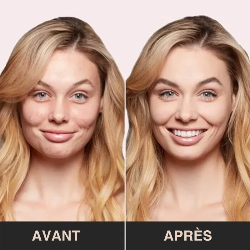 • Couverture à construire par tapotement: Tapotez pour former une couverture transparente, moyenne ou même complète pour dissimuler les défauts, y compris les rides, les taches, l'acné, les pores dilatés, les cicatrices d'acné et toute tache sombre, et améliore la texture de la peau pour une peau d'apparence plus jeune.