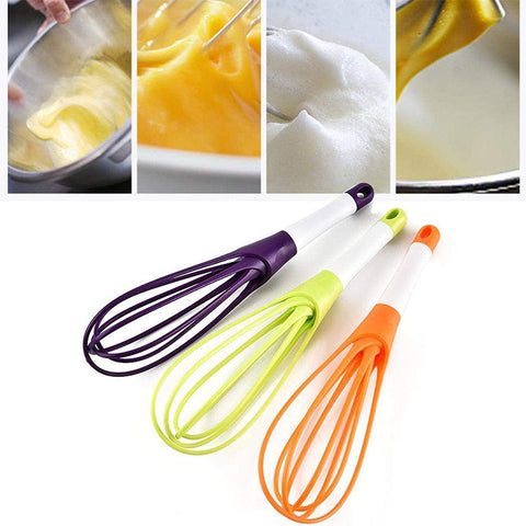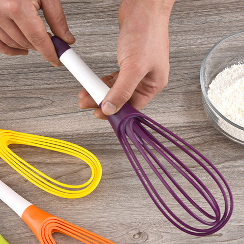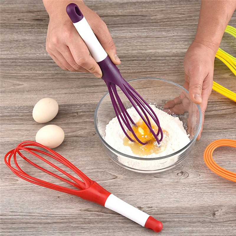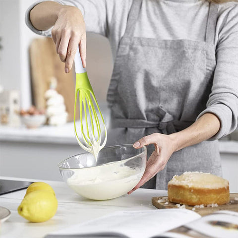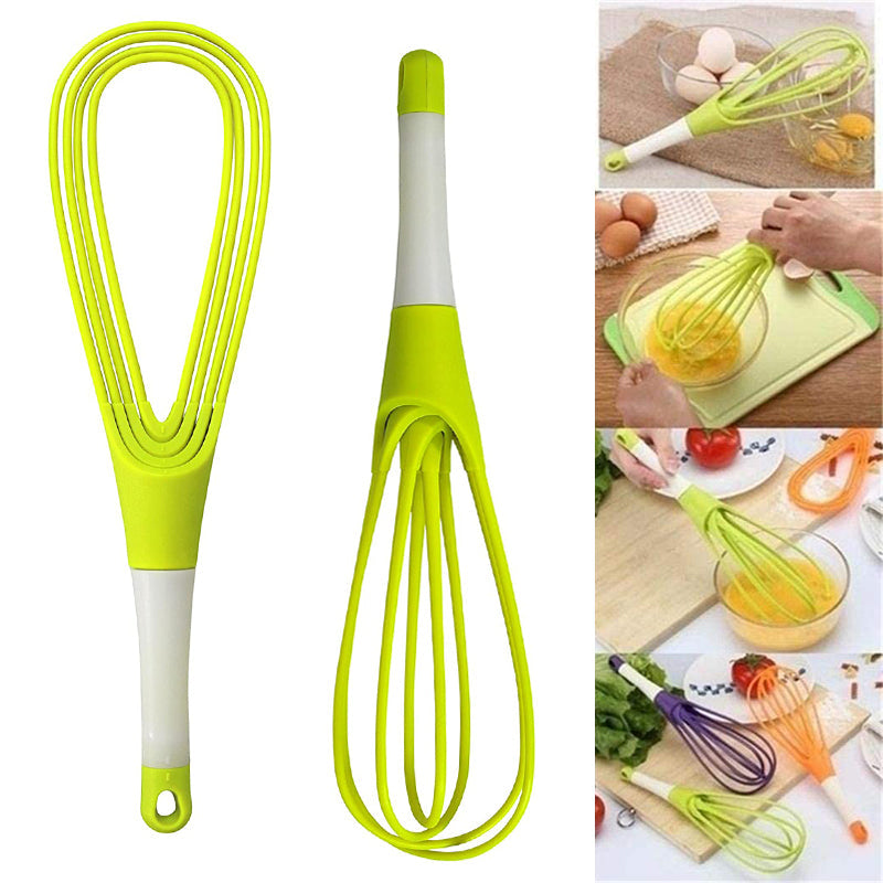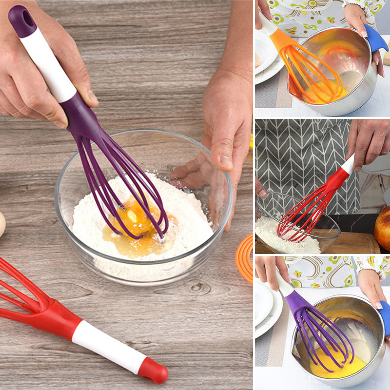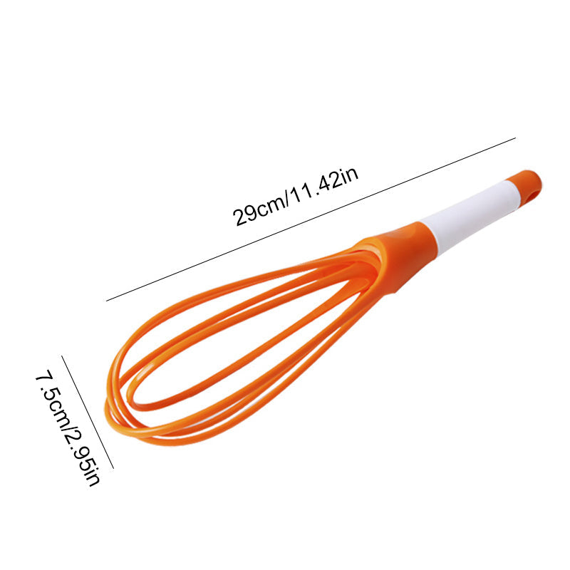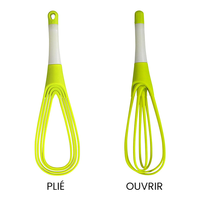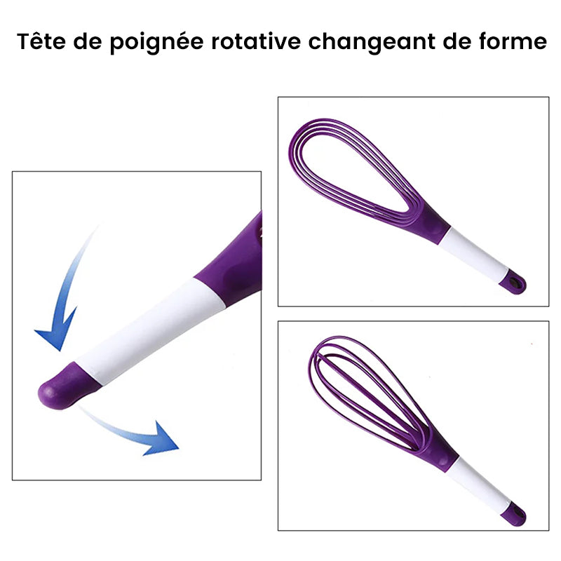 • Design 2 en 1 : le fouet en silicone a un design 2 en 1, en tournant la poignée, vous pouvez transformer le fouet en un fouet plat et un fouet ballon. Avec une légère torsion de la poignée, le fouet se transforme en un axe sphérique avec une ergonomie.