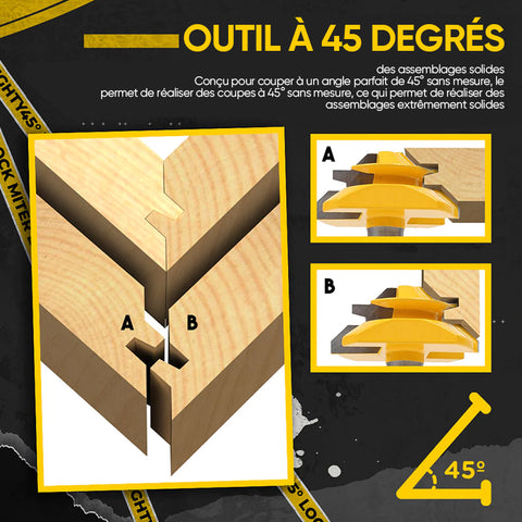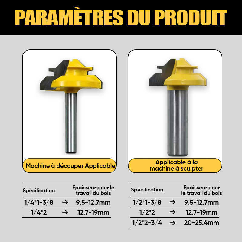 • Les coupes à 45 degrés qui s'emboîtent les unes dans les autres permettent de réaliser des assemblages extrêmement solides sans difficulté pour maintenir les planches en place lors du serrage.