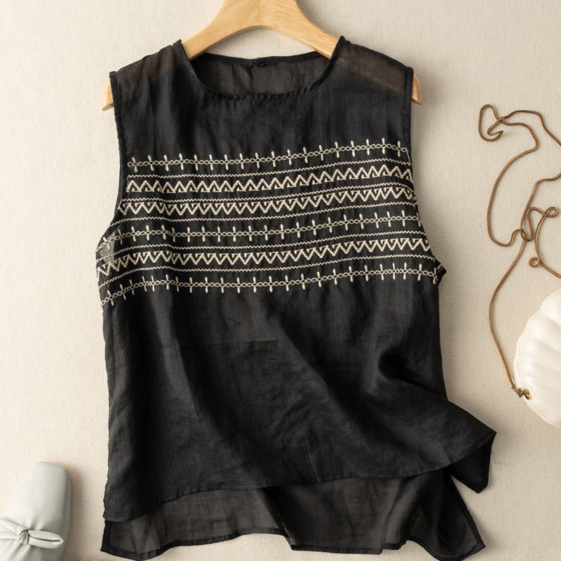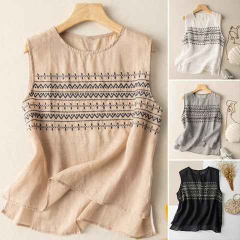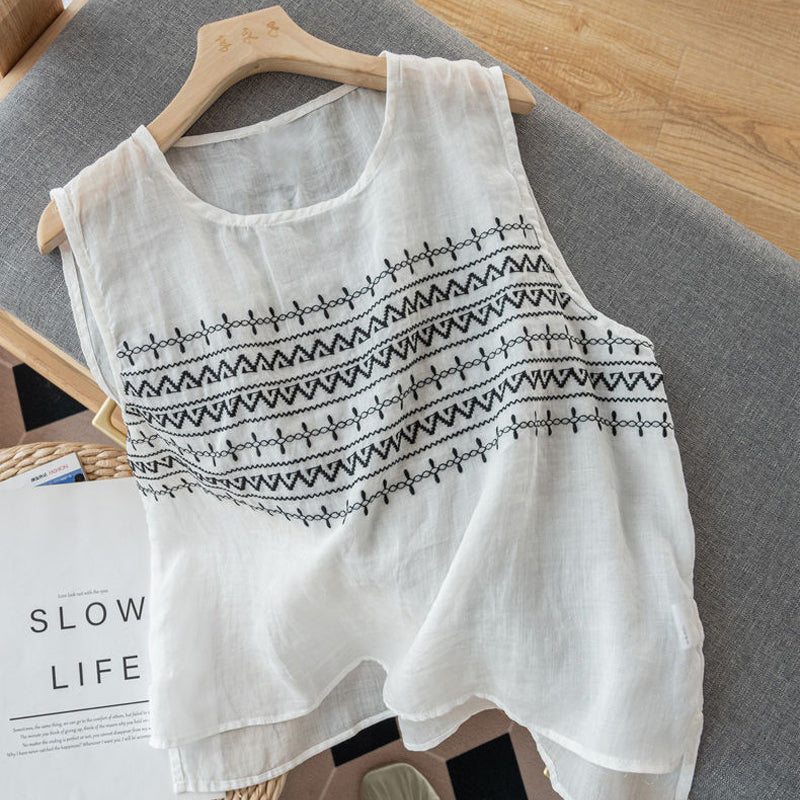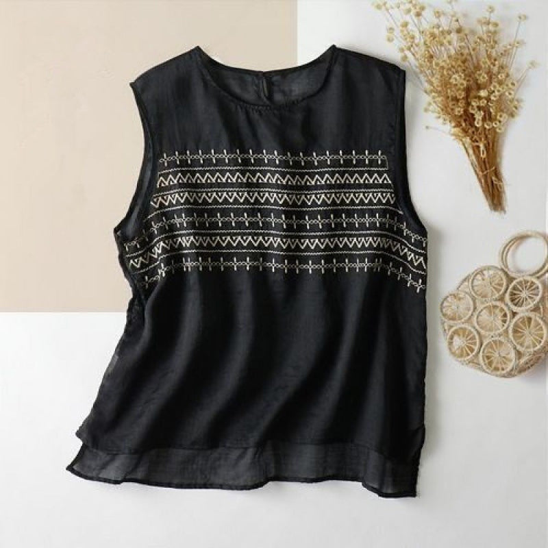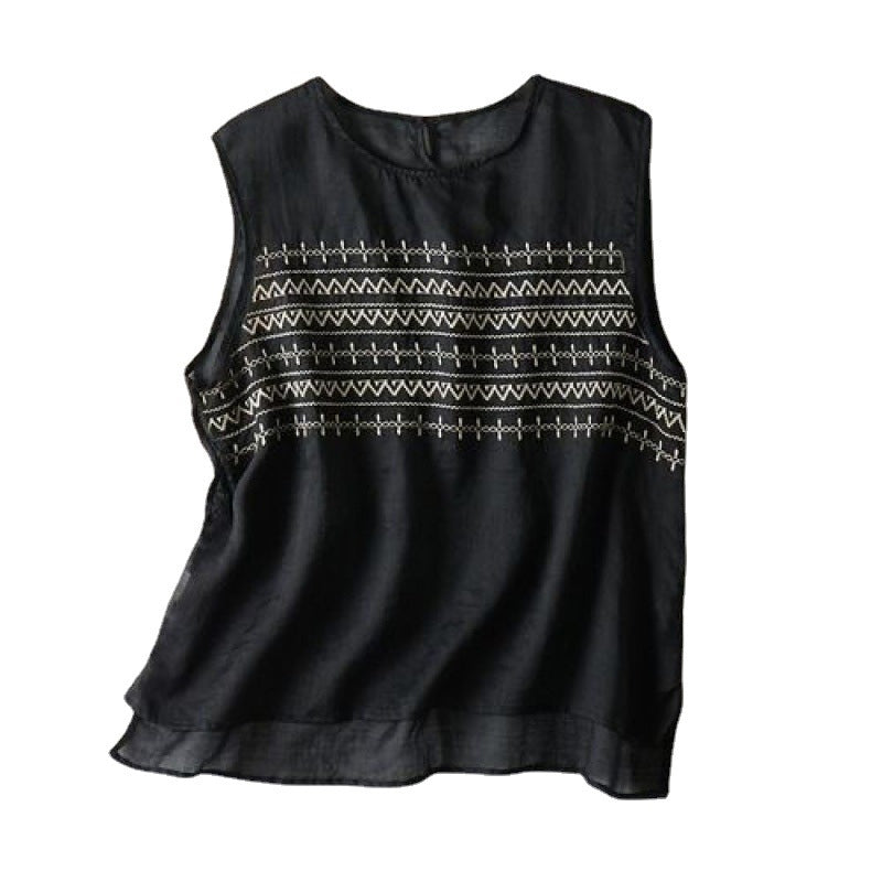 - 1*Gilet En Lin Ample Brodé D'été