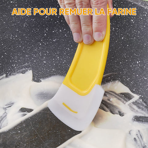 NETTOYAGE EFFICACE: Les bords biseautés du grattoir pour casseroles et bols éliminent facilement les résidus alimentaires et la saleté des ustensiles de cuisine. Sa conception unique vous ermet de nettoyer facilement les zones difficiles d'accès des casseroles et des poêles.