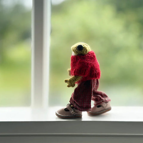 • Cette grenouille est diffĂ©rente de toutes mes autres grenouilles - elle peut s'asseoir ou se tenir debout, elle a une taille, et elle a aussi un pull Ă  tricoter !