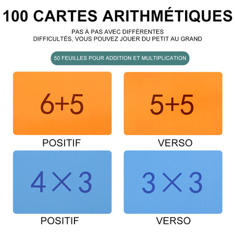 JOUETS D'ÉDUCATION PRÉCOCE CLASSIQUES: 100 cartes arithmétiques de différentes difficultés, avec une variété de façons de jouer, étape par étape, adaptées aux enfants à différents stades.