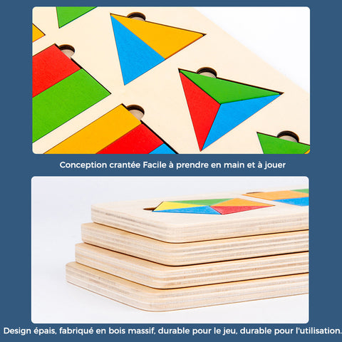 Trieur de formes et correspondance des couleurs: nos puzzles pour trier les formes en bois se composent de 3 formes carrées, rondes et triangulaires et sont divisés en 4 couleurs: bleu, jaune, vert et rouge. Ils aident les enfants à reconnaître les couleurs et les formes. Excellent outil d'apprentissage pratique pour le développement en classe, à la maison ou dans le cadre du développement des enfants.