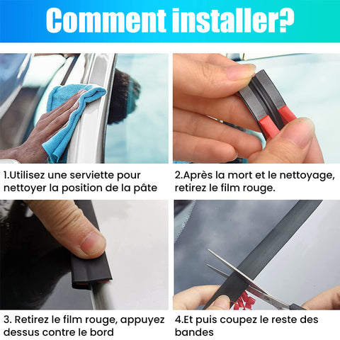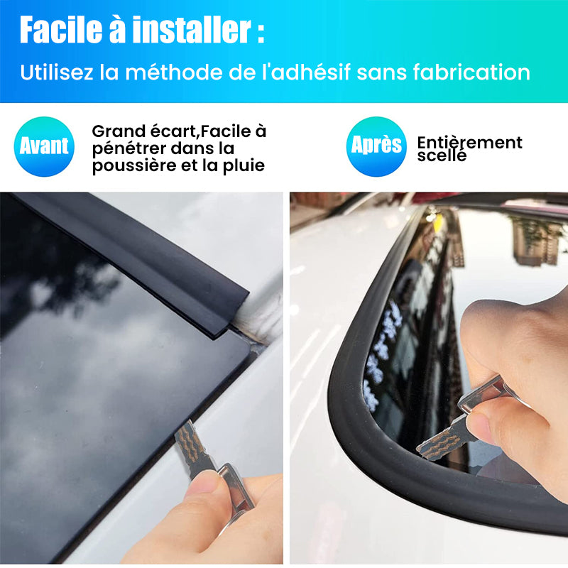 đăPratique Ă utiliserăCette bande de pare-brise avant de voiture est facile Ă installer ; Tout d'abord, vous devez essuyer la porte et la fenĂȘtre sur lesquelles vous prĂ©voyez de coller les bandes avec une serviette propre, puis retirer le film protecteur et les coller sur le bord de la fenĂȘtre et de la porte en douceur, vous pouvez terminer l'installation rapidement.