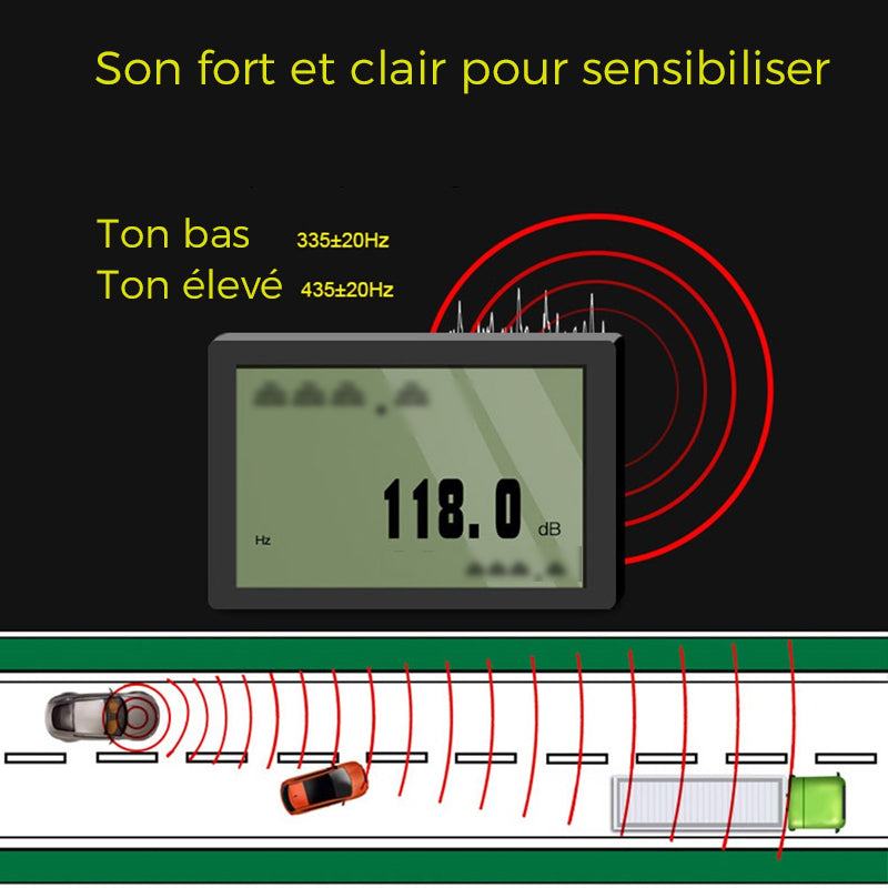 Le volume fait la différence: Être facilement entendu à une plus grande distance donne à chacun plus de temps pour réagir. La distance d'écoute de votre klaxon peut être multipliée par 3 avec le Dual Track - un klaxon de moto standard ne peut pas rivaliser avec cela.