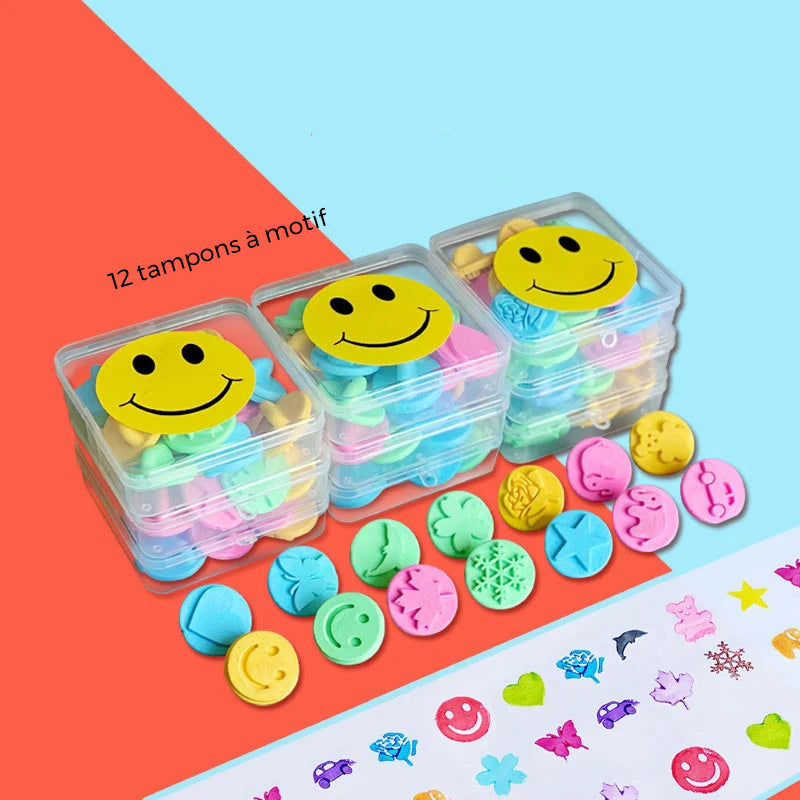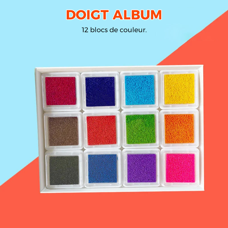 Ensemble de 12 couleurs (blocs de 12 couleurs + 12 tampons de motif + livre de dessin au doigt × 1)