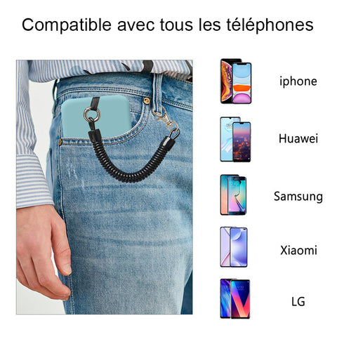 Ce câble universel de porte-clés de téléphone sécurisé résistant aux chutes a une légère élasticité. Lorsque vous reliez la tête et la queue pour former une boucle de téléphone, votre poignet est légèrement tendu pour éviter que le téléphone ne tombe de votre poignet.
