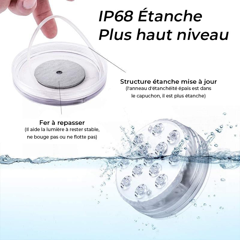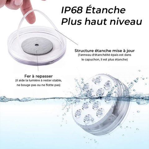 • lumières submersibles étanches avec ventouses et structure entièrement étanche et résistante aux intempéries, elle fonctionne bien dans les endroits humides et secs, tels que la lumière de la piscine, la lumière de l'étang, le bateau, la fondation, l'aquarium, l'aquarium, le vase, le pot de fleur, la cascade, la baignoire , bain à remous et couloir, sous-sol, garage, état, mariage, événement, fête comme lumière décorative, lumière d'ambiance ou veilleuse décoration intérieure et extérieure