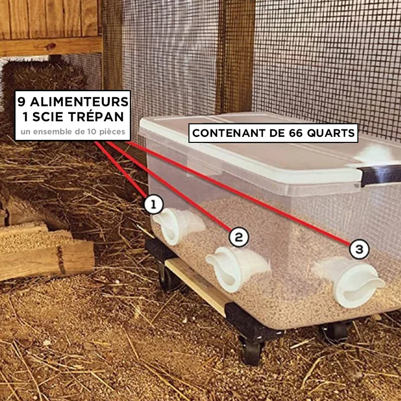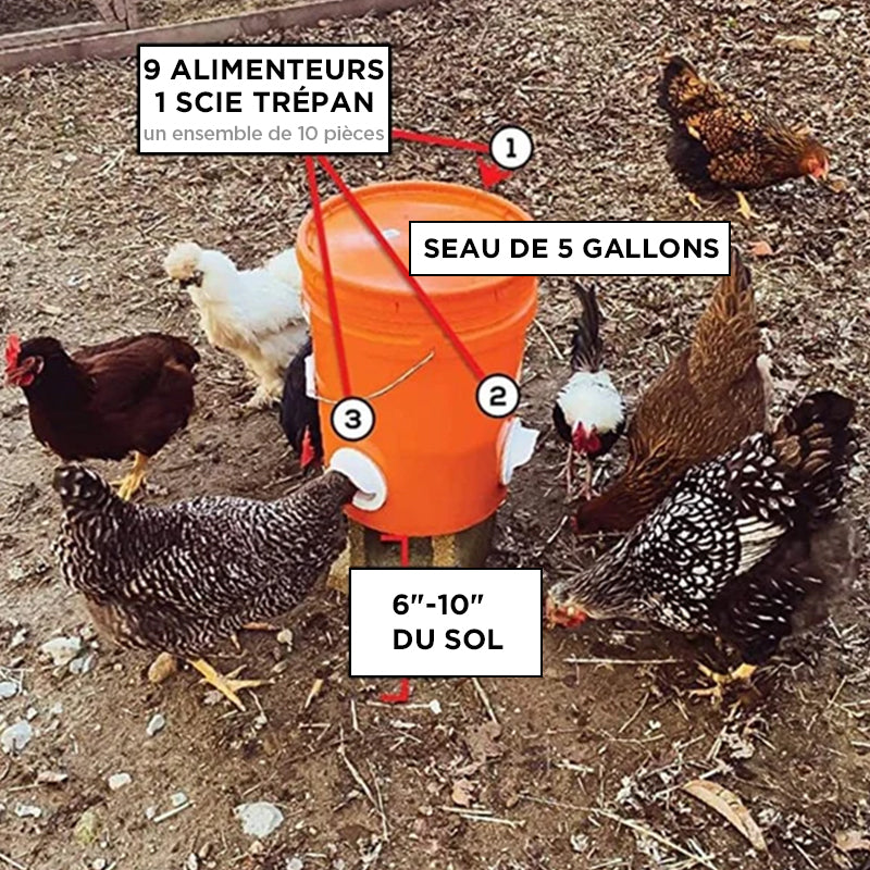 • 🐓【DESIGN INTELLIGENT】Il est conçu pour que la gravité fasse le travail, permettant une alimentation constante, sans les déversements ou les dégâts qui attirent les rongeurs et la vermine.