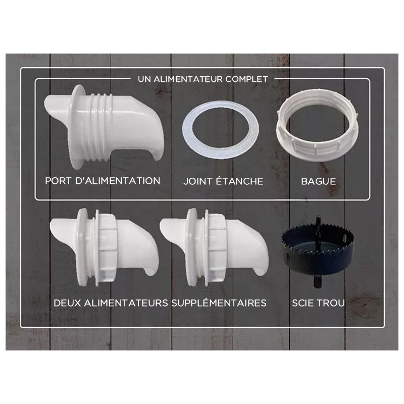 • 🐓【SUPER FACILE À INSTALLER】Aucun matériel supplémentaire n'est requis. Cette mangeoire à volaille est déjà équipée d'une scie cloche de 3,15 pouces (8 cm) et vous pouvez installer une mangeoire à trois ports en quelques minutes.